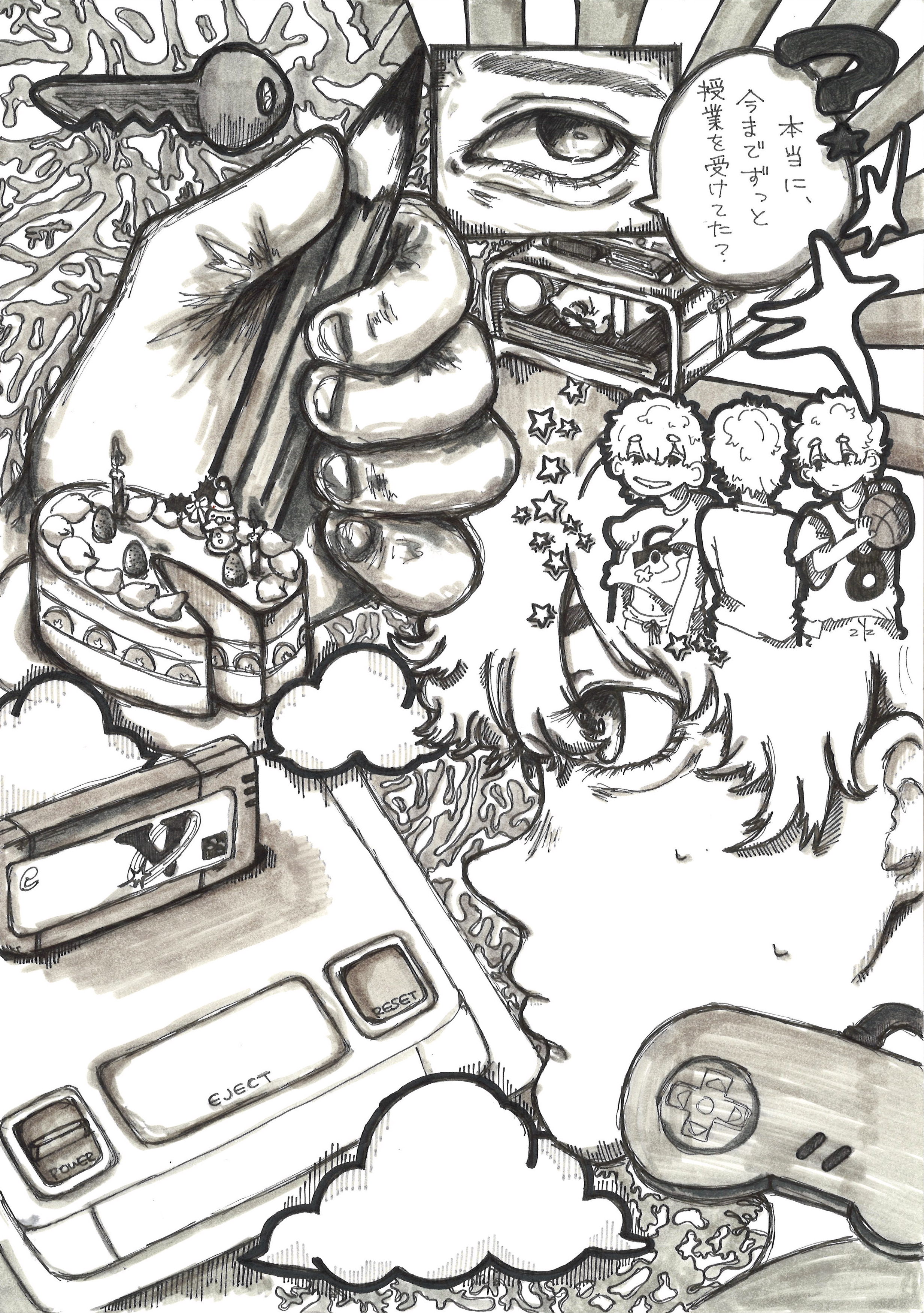 ファインアート科(絵画専攻、版画専攻)、ビジュアルデザイン科(イラストレーション・絵本専攻、グラフィックデザイン専攻、メディアデザイン専攻)、研究科の学生が授業内で制作した作品です。