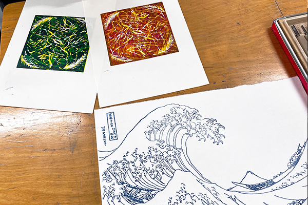 木版画&浮世絵本校所蔵の葛飾北斎「神奈川沖浪裏」復刻版の版木の摺り体験に加え、正方形の版木を自由に彫って様々な色で摺り重ねる多色木版画の体験。江戸時代と現代を往き来する体験講座です。    学校説明会ファインアート科、ビジュアルデザイン科の各専攻のカリキュラム、社会連携授業などの特色、そして創形独自の就活フォロー制度などをご説明いたします。