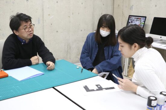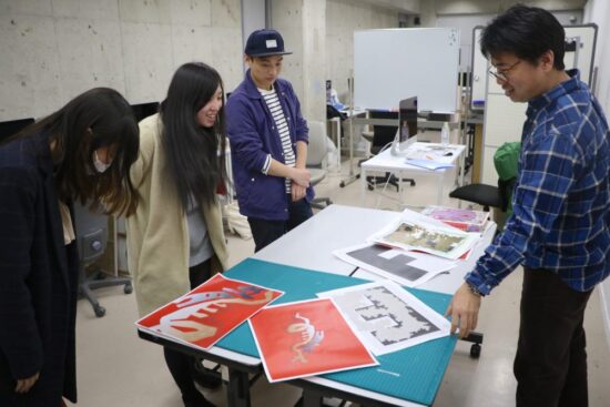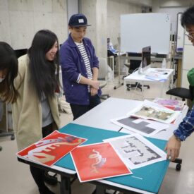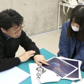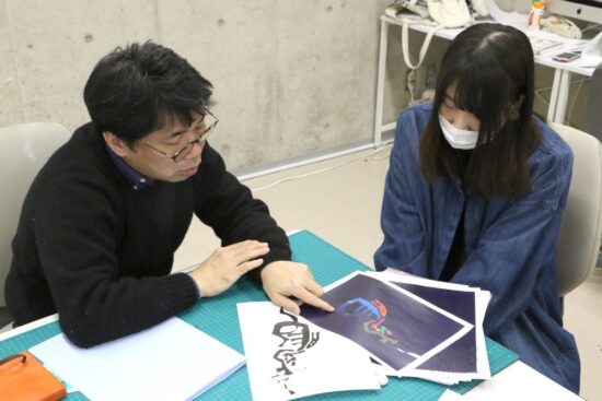 草谷隆文先生による2年生グラフィックデザイン専攻 「グラフィックデザイン1」の授業です。 今まで学んだテーマから、タイポグラフィを主体としたポスター制作を 行ないます。 B全もしくはB倍のポスターを作る事により、 文字のディティールを追求、研究します。