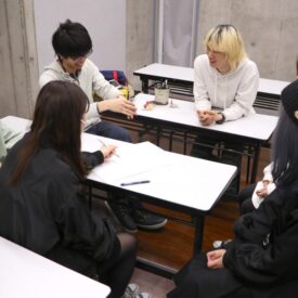 2年生 ビジュアルデザイン科「メディア・ブランディング1」佐藤芽生先生による2年生 ビジュアルデザイン科「メディア・ブランディング1」の授業です。 メディア、そしてブランディングとはなにかを『知り』、『考え』、『アウトプットする』の工程を繰り返し、クリエイティブに向かう基本姿勢を身に着けることを目指します。前半はメディアの性質と自身の性質とを”ブランディング”に落とし込むワークを行います。後半はグループでの実践的な集客課題に取り組みます |