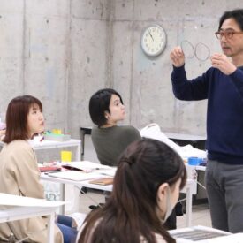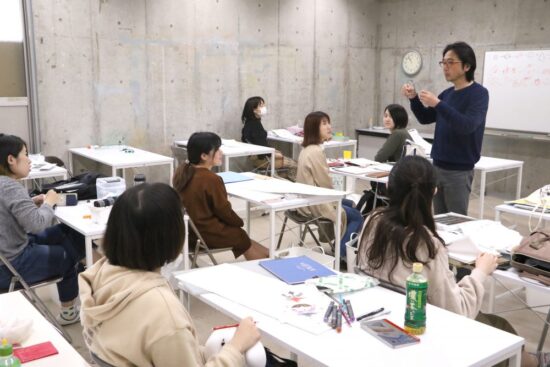 3年生 イラストレーション・絵本専攻「イラスト技法2」飯田淳先生による3年生 イラストレーション・絵本専攻「イラスト技法2」の授業です。イラスト技法実習1の概要を引き継ぎ、より実践的なオリジナリティーある技法を考え、実践していきます。実践的な技法を中心にしたテーマ制作を行ないます。 |