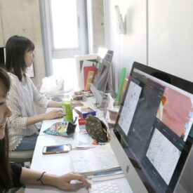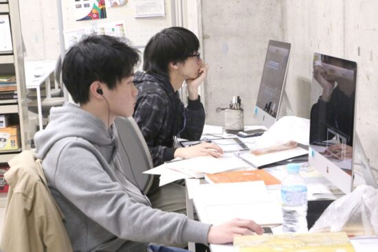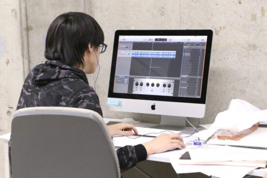 松本力先生と本多裕史先生による2年生アニメーション&コミック専攻「アニメーション&サウンド」の授業です。 映像・アニメーション表現は、時間=記憶にかたちをあたえます。一コマずつのドローイングによるストップモーション・アニメーションの技法と、その映像に対する自分のイメージに沿った音楽の作曲で、想像力(意志)と批評性(意図)をもって、心象をあらわすような雰囲気のある映像と音楽を制作し、その魅力を追求していきます。