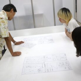 2年生 グラフィックデザイン専攻「グラフィックデザイン基礎2」原口昌彦先生による2年生グラフィックデザイン専攻「グラフィックデザイン基礎2」の授業です。 プロになるための基礎的な要素を実践形式で行います。企画、立案、設計に必要なアイデアの構築とその仕組みを、広告グラフィック・デザインをベースに展開します。 各テーマごとに実践形式の課題を出し問題点の抽出と改善を制作を通して各自が発見できるワークフローを身につけます。制作後にプレゼンテーション・講評を毎回実施します。 |