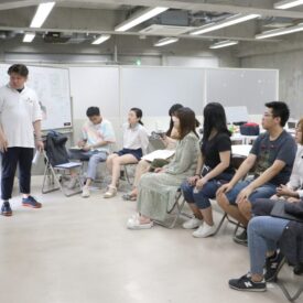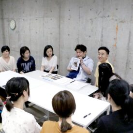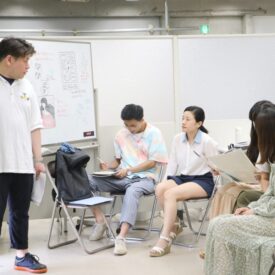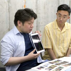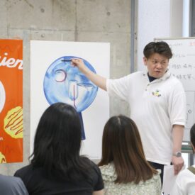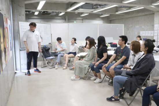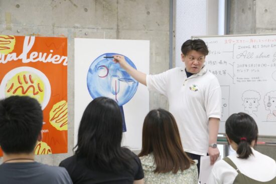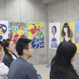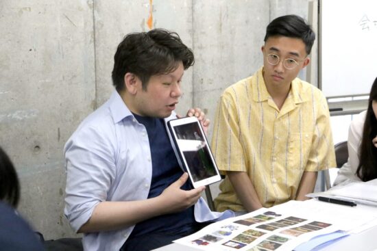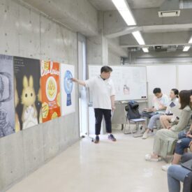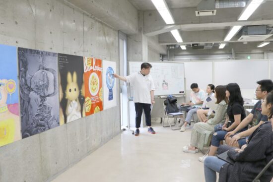 高橋庸平先生による3年生イラストレーション・絵本専攻「テーマ制作2B」の授業です。 イラストレーションの制作技術と理論を「イラストレーションとは何か?」「自己とは何か?」「表現とは何か?」の3つをキーワードに学習します。自画像を用いて、個展を想定したポスター(B1サイズ)のデザインを行ないます。