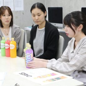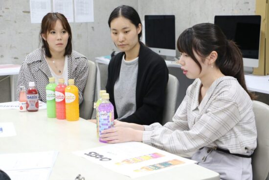 松本泉先生による3年生グラッフィックデザイン専攻「パッケージデザイン」の授業です。 パッケージデザインは、買い手に様々な情報を伝達しながら購買に結びつけ、買われた後は人々の暮らしに寄り添って存在していくという、もはや生活文化そのものと言えるほど重要なものです。本授業ではパッケージデザインとは何か、どのような仕事なのかを講義と演習 の両面で理解体験し、興味喚起させることを目標とします。