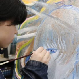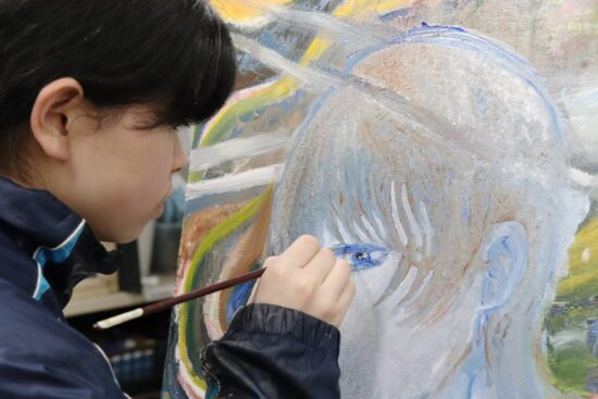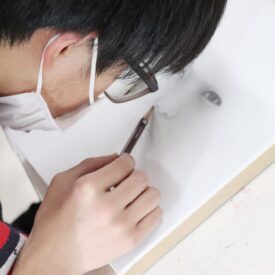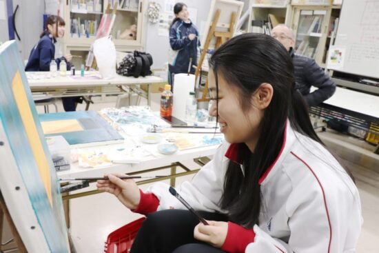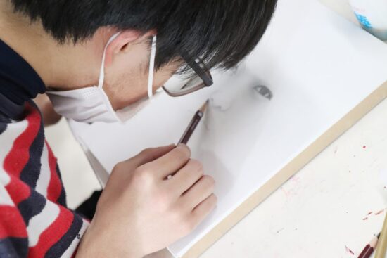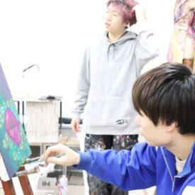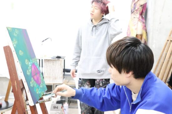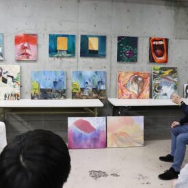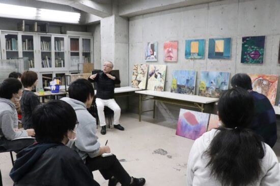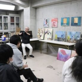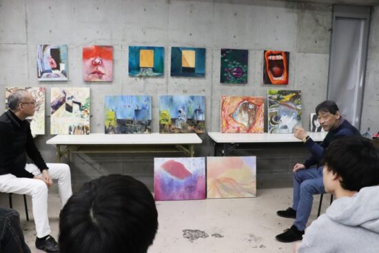 1年生 絵画造形専攻「専攻別実技テーマ制作」工藤礼二郎先生による1年生絵画造形専攻「専攻別実技テーマ制作」の授業です。 「おとこ・おんな」「広い・狭い」のように、意味上の対(つい)をなす言葉を学生各自で選択しそれらを元に二枚の作品を描く。言葉のもつイメージをいかに絵画に置き換えるかをそれぞれの使用画材の特性も考慮しながら構築する。 |