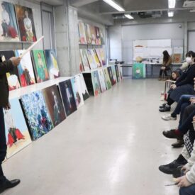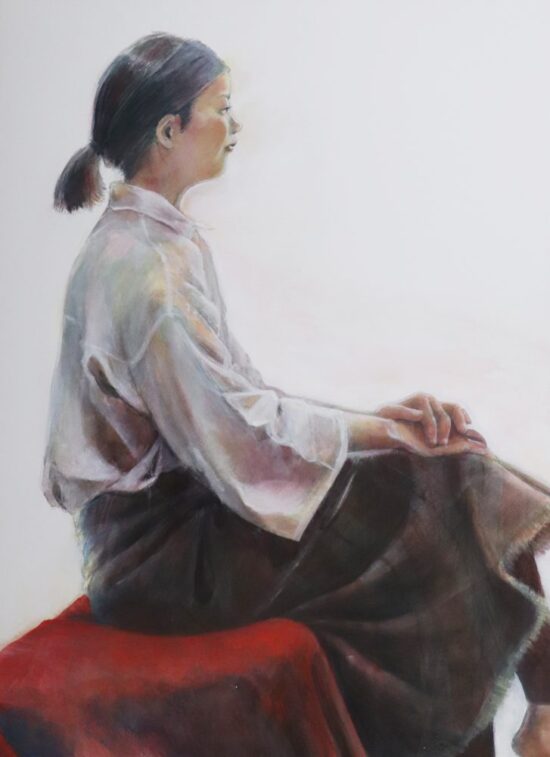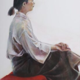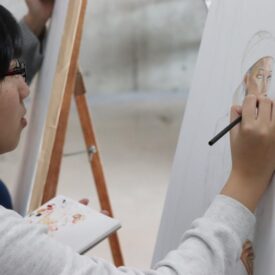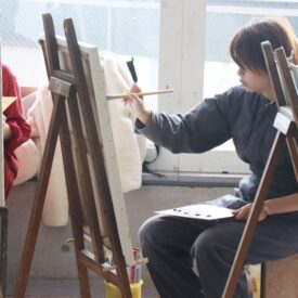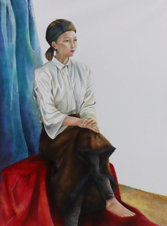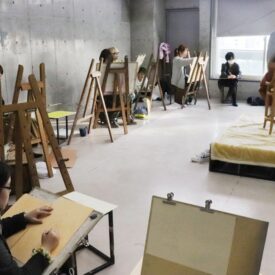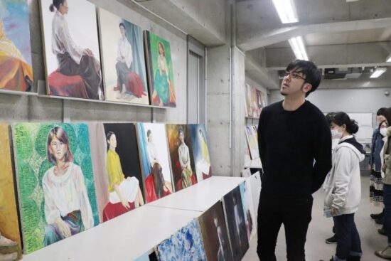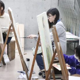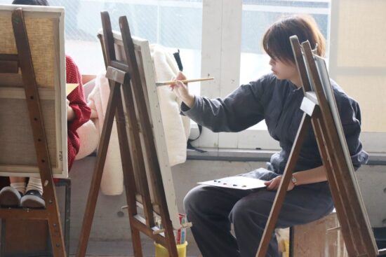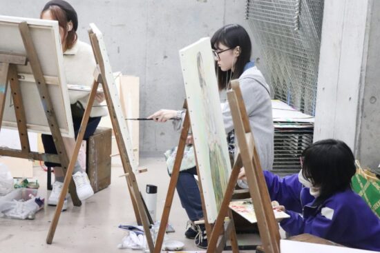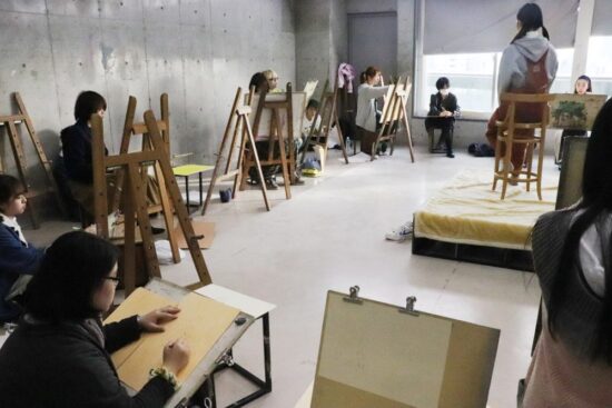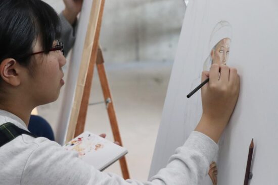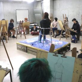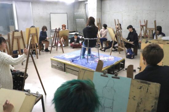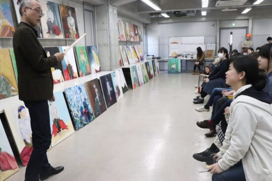 工藤礼二郎先生による1年生「人物着彩」の授業です。
