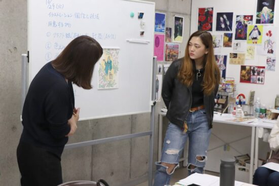 平沢けいこ先生による2年生 イラストレーション・絵本専攻 「ファッションイラストレーション」の授業です。