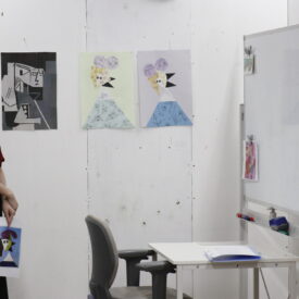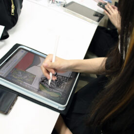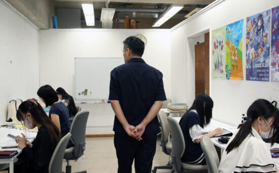 山崎杉夫先生によるイラストレーション・絵本専攻 「イラストレーション表現基礎」の授業です。