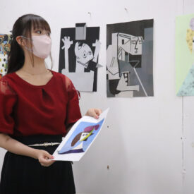 「アートとイラストレーションの違いとはなんだろう?」 そんな基本的なところから始めて、実技を通してイラストレーションへの理解と興味を深めていきます。 ピカソと言う誰でも知っている人物と作品をテーマにしてイラストレーションに仕上げていきます。