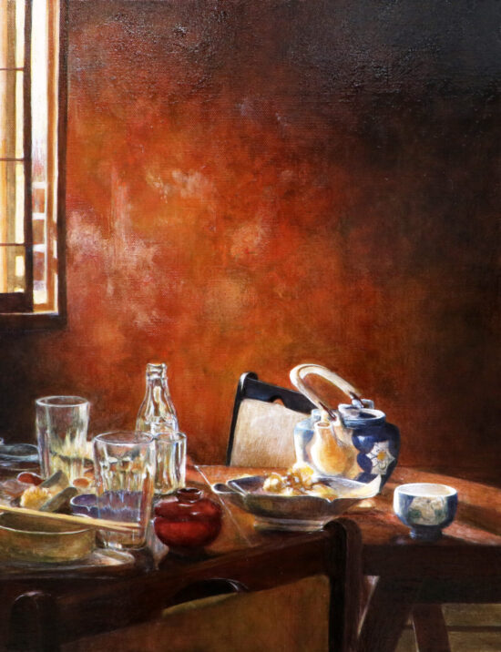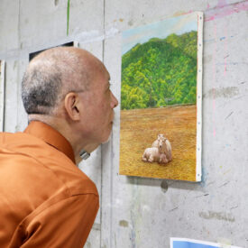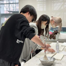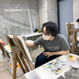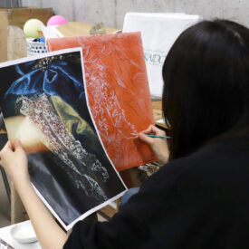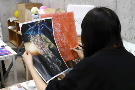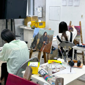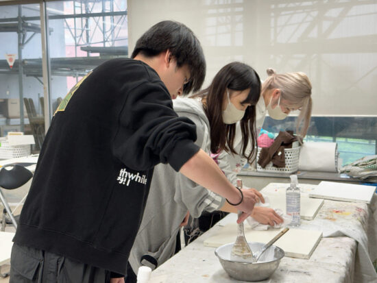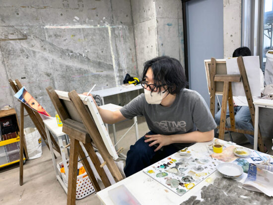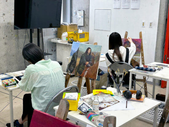 2年生ファインアート科「絵画技法実習(混合技法)」工藤礼二郎先生による2年生 ファインアート科「絵画技法実習(混合技法)」の授業です。 有色下地を施したキャンバスにエマルジョンテンペラと油彩の積層からなる描画により、視覚的リアリズムを追求する。