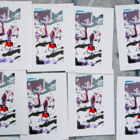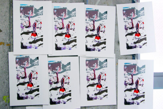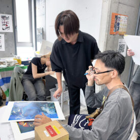 PCを使用した4色分解による4版4色の作品(18×25cm)を一点、5版以上を使った作品(25×38cm)を一点制作。色を刷り重ねる時の表現効果、用具資材の正しい使い方、手順を覚え多彩な効果を会得していきます。