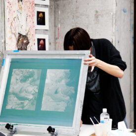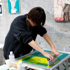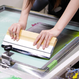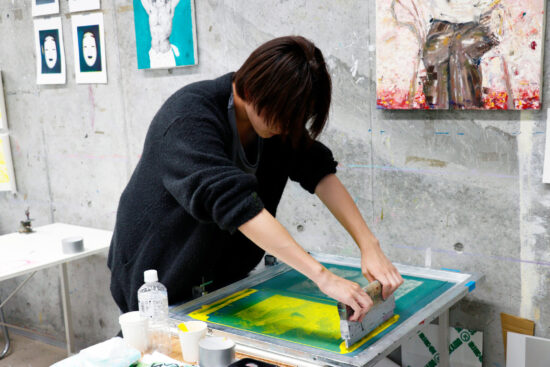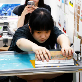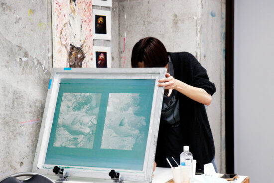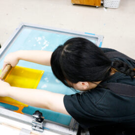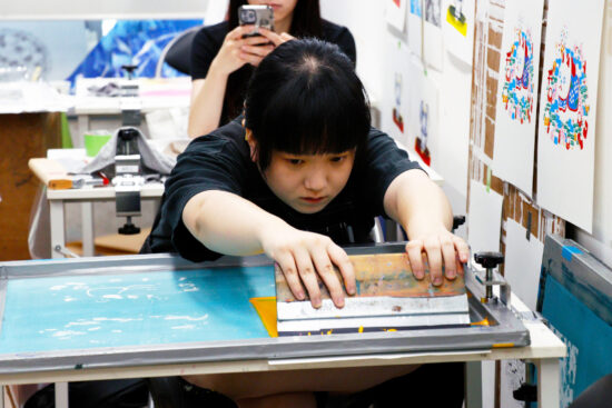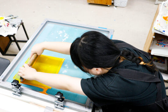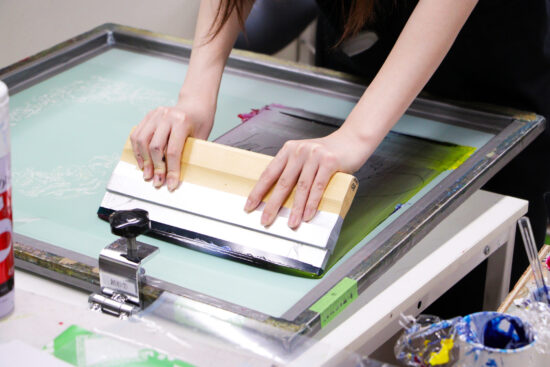 シルクスクリーン版画制作を通して孔版画の専門的知識を習得し、自己表現に結びつくよう学習します。