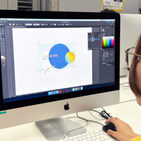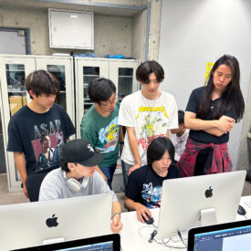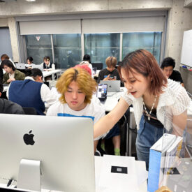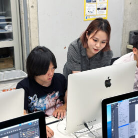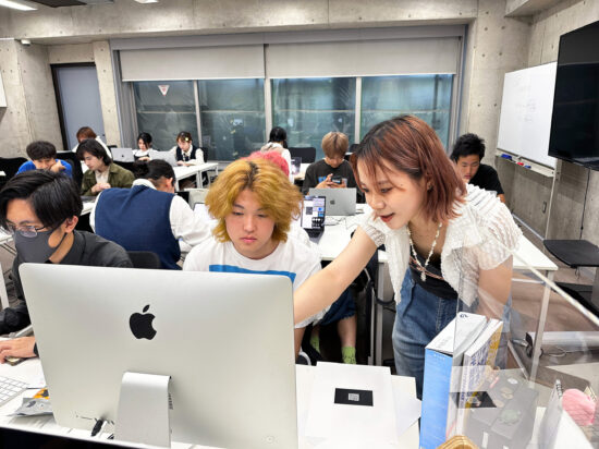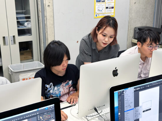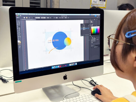 濱迫萌先生による1年生ファインアート科「Mac講座A」の授業です。 前期では基礎的なPCの使い方、IllustratorおよびPhotoshopの基礎的知識、技術を身につけるための授業を行います。 まずはPCに慣れ、何が出来るのかを知ることからはじめます。 印刷物(紙媒体)をベースとした各メディアのデータ作成に必要な基礎知識やスキルなどを身につけることを目指します。