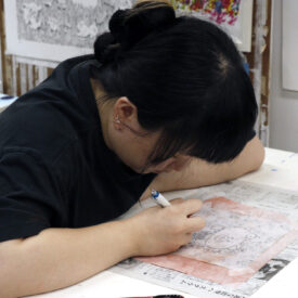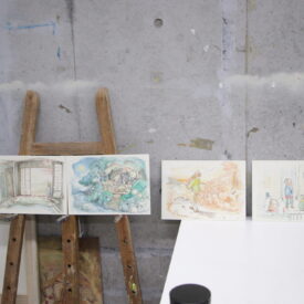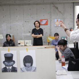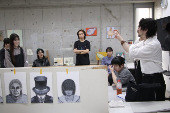 2年生ファインアート科「イラストB」須田浩介先生による2年生ファインアート科「イラストB」の授業です。 4枚の作品を描く。描くテーマは各自で決めて良いです。自分なりに表現のフォーマットを考えてから描く。描くもののテーマ、コンセプト、発表する際のブランディングを意識する。 イラストレーターがクライアントワークで行うアイディア出しラフの提出などのプロセスを活かし制作に取り組みアーティストとしてもイラストレーターとしても必要なコンセプトと作品表現とを繋げる力を伸ばす。アナログ画材を使用し与えられた枠組みの中で作品を制作する上で個々の持つ個性や表現を活かしながらより魅力的な作品表現となる様に作品を描く上でのコンセプトと「何故」をよく考えながら表現に繋げ自分の表現や世界観をブランディングしていく為の授業です。 |