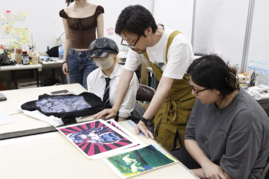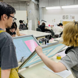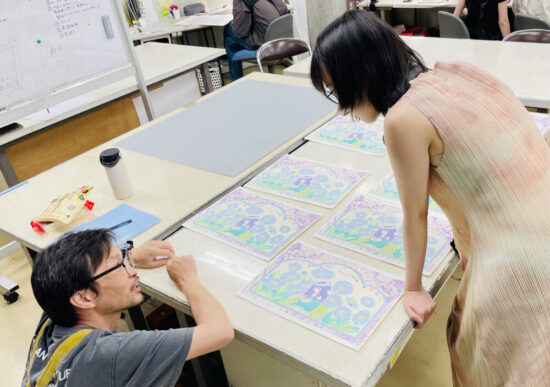 東樋口徹先生による2年生 版画専攻 「シルクスクリーン」の授業です。