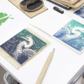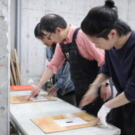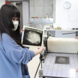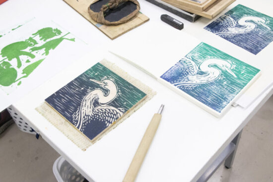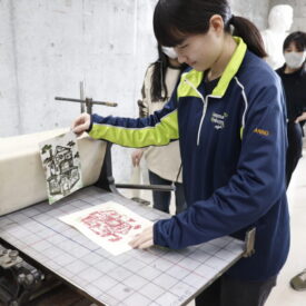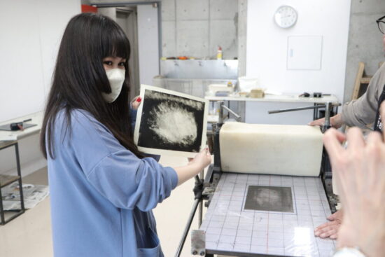 鈴木吐志哉先生による1年生ファインアート科「版画基礎」の授業です。 様々な技法を体験し、直接描くことでは得られない間接表現の魅力を学びます。 版画で遊びながら「技法の力」を実感し、自分のイメージを成長させることをこの授業の最大目的とします。