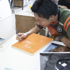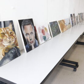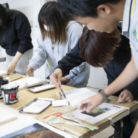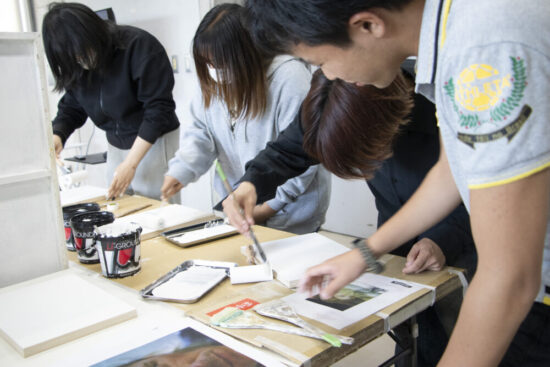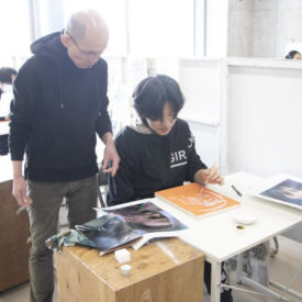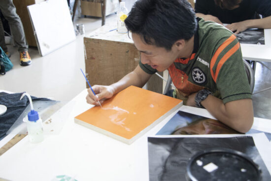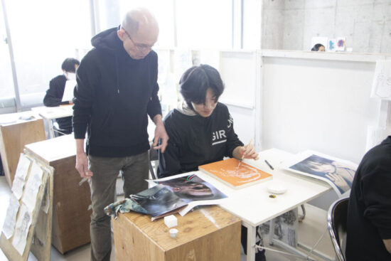 2年生 絵画専攻「混合技法」熊谷宗一先生による2年生 絵画専攻 ルネサンスから近代に至るまでの西洋絵画の主な油彩技法である油彩とテンペラによる混合技法を習得します。 有色下地を施したキャンバスにエマルジョンテンペラと油彩の積層からなる描画により、視覚的リアリズムを追求します。 |