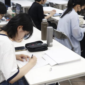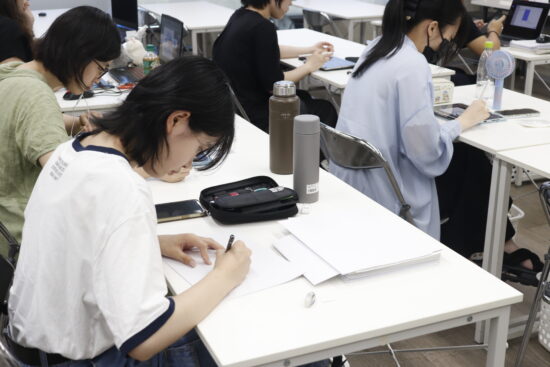 1年生ビジュアルデザイン科「アニメーション基礎」飯田萌先生による1年生部ジュアルデザイン科「アニメーション基礎」の授業です。 手描き、コマ撮り(実写も可)など、自由な表現で15秒程度のアニメーションを制作をおこないます。 15秒のアニメーションを作るのに原画は150枚程度描かなければいけないので作業量はかなり多くなりますが、自身が描いた絵が動く楽しさを体験できる授業です。 編集作業を行う場合はAdobe PhotoshopやAdobe premiere Proを使用します。 また、たくさんのアニメーション作品を観て、手書きアニメーションの表現方法などを学びます。 |