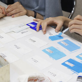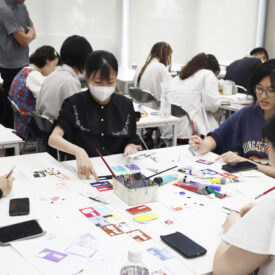 1年生 ビジュアルデザイン科「社会連携活動授業」須田浩介先生、関根秀星先生、田中北斗先生、岡山拓史先生による1年生ビジュアルデザイン科「社会連携活動授業」です。 この授業では社会連携活動の一環として首都圏物流事業協同組合と連携し、有効期限切れとなったETCカードを活用した 「くるまかるた」 を制作しました。 本来は捨てられてしまう物を柔軟な発想でアート作品や展示物の素材として活かし創作すること、完成した作品や成果物を創形祭を通し学内外の様々な人に鑑賞してもらうことを目的とした授業です。 |