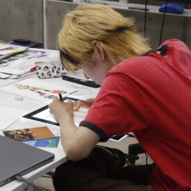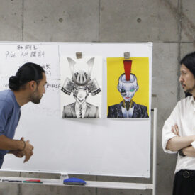 2年生 イラストレーション・絵本専攻「イラストレーション実習」須田浩介先生、関根秀星先生による2年生ビジュアルデザイン科イラストレーション・絵本専攻「イラストレーション実習」の授業です。 テーマや規格を設定し、2枚の連作作品(モノクロ×カラー)を制作しました。 作品を「見せる」「伝える」ことを意識しながら、イラストレーターとしての表現力を磨いています。展示に向けた作品づくりを通して、一人ひとりの感性と想像力がさらに広がりました。 さらに、各自が定めたテーマに沿って、30枚の連作を描きました。一枚一枚に自分の想いを込め、世界観を丁寧に表現しています |