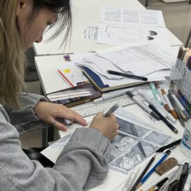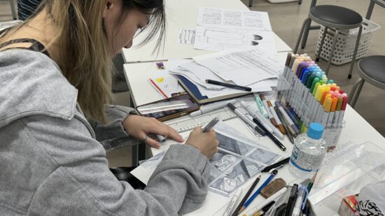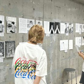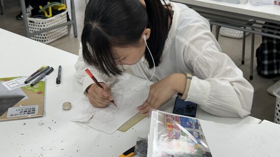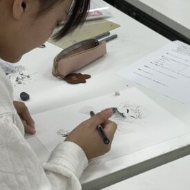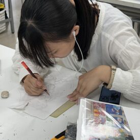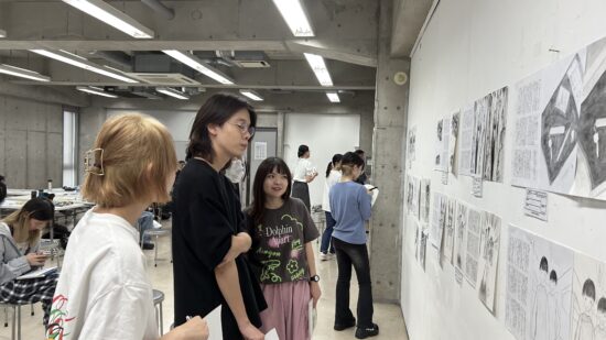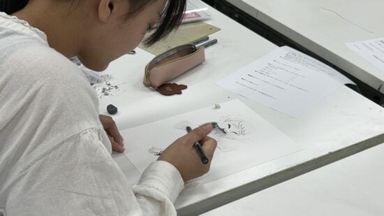 1年生 ファインアート科「カットイラスト」石山さやか先生による1年生ファインアート科「カットイラスト」の授業です。 実際に誌面に掲載されることを想定し、文章に寄り添ったイラスト表現を学びます。読者がイメージを広げられるイラストとは何か、文章に合ったビジュアルとはどうあるべきかを考えながら、自分の作風を伸ばすことを目標とします。 授業では実際の小説を題材にし、その内容に合わせた挿絵を制作します。完成した絵は誌面レイアウトに組み込み、文章との関係性や見せ方も検証します。 「何を描くか」「何を描かないか」、そして「どんな画材を選ぶか」など、表現に必要な判断を自分で行うことを大切にしながら進めていきます。文章を読み取り、想像し、適切な形に落とし込む力を養う実践的な授業です。 |