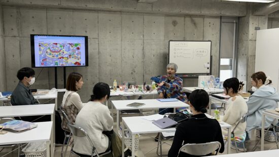 3年生 イラストレーション・絵本専攻「ルポイラスト」キタ大介先生による3年生ビジュアルデザイン科イラストレーション・絵本専攻「ルポイラスト」の授業です。 各自がテーマを設定して現地取材を行い、その体験をもとに文章とイラストを組み合わせた記事を制作します。現地での観察力や着眼点、記事全体の構成を意識しながら制作することで、イラストレーターとして幅広い依頼に対応できる力を養うことを目的としています。 また、ルポイラストの制作工程を学ぶことで、取材から制作、編集を経て作品をまとめ上げる一連の流れを理解します。ジャンルやニーズを意識した作品づくりを行い、将来的にポートフォリオへ収めて営業活動に活かせるクオリティを目指すことで、実践的なセールス戦略を明確にする機会にもなります。 |