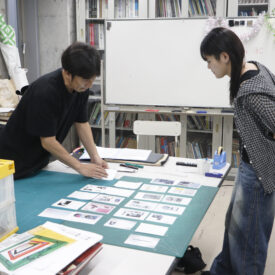 3年生 グラフィックデザイン専攻「ブランディング応用」高林直俊先生による3年生ビジュアルデザイン科グラフィックデザイン専攻「ブランディング応用」の授業です。 制作物は、各自が興味のあるジャンルを選んで取り組みます。基本的には2点の制作を目標とし、それぞれのスケジュールを自分で管理しながら集中して進めます。 制作に取り組むにあたり、まずは対象となるブランドの本質であるアイデンティティを理解し、その概念をどのようにビジュアルへ落とし込むかを考えることで、思考力・表現力・伝達力を高めていきます。あわせて、制作のスピード感にも意識を向け、実践的で完成度の高いアウトプットを目指します。 |