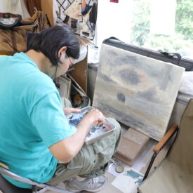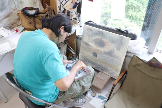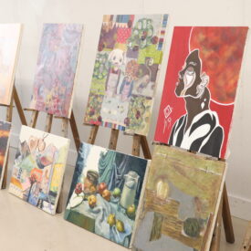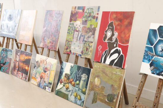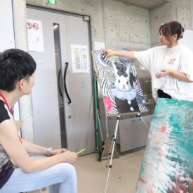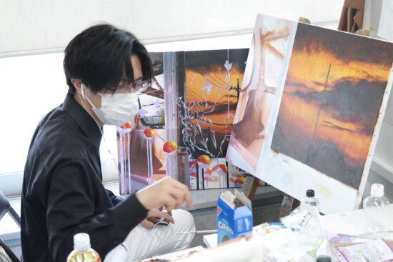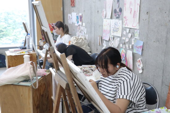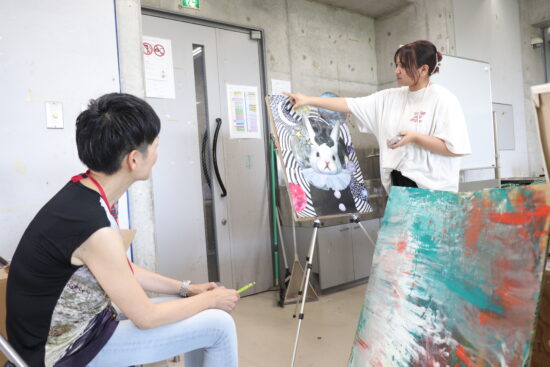 2年生 絵画専攻「絵画演習Ⅱ─コラージュから絵画へ」室井公美子先生による2年生ファインアート科絵画専攻「絵画演習Ⅱ─コラージュから絵画へ」の授業です。 コラージュを絵画の出発点とすることで、構成力を養い、組み合わせによる視覚効果を理解します。また、コラージュの要素を模写することで、観察力と描写力を高め、絵画表現の幅を広げることを目指します。 ①構成力を探る: B2サイズのコラージュ制作を通して、既成概念にとらわれずに画面を組み立てる構成力を探求します。 ②視覚効果を使いこなす: 素材の組み合わせや配置によって生まれる多様な視覚効果を発見し、それを自らの表現意図に合わせて使いこなす術を学びます。 ③観察力と描写力を深化させる: コラージュの複雑な要素を取捨選択しながらF15 号のキャンバスに描写することで、それを再現する描写力と絵画の構成力を深化させます。 |