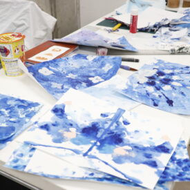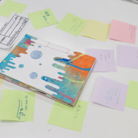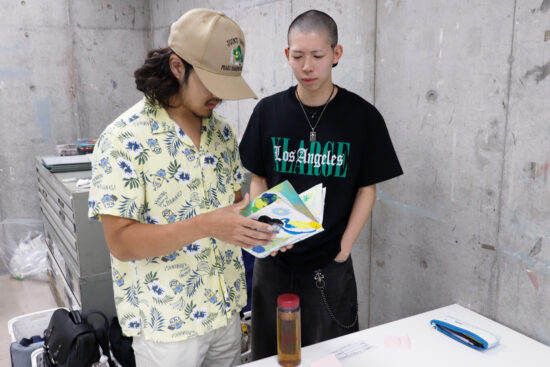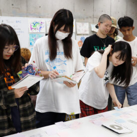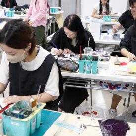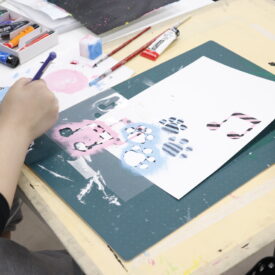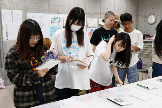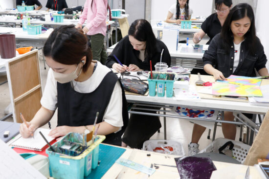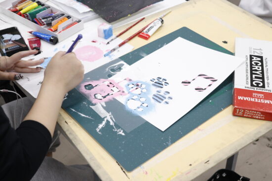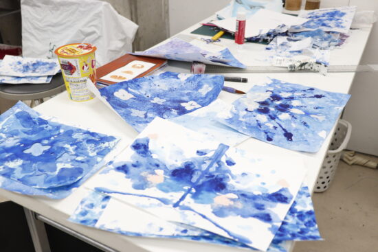 1年生 ファインアート科「ドローイングブック」室井公美子先生による1年生ファインアート科「ドローイングブック」の授業です。 絵画のモダンテクニックを学び表現の幅を広げて行きます。また、モダンテクニックには偶然性が伴うもので、その偶然性を活かしつつ、意図した表現に近づけるための試行錯誤を通じて、柔軟な表現力を養います。 モダンテクニックである、スパッタリング、ハッチング、デカルコマニー、スタンピング、フロッタージュ、コラージュ、ドリッピング、スクラッチなど、さまざまな技法を学びます。出来上がったドローイングを組み合わせ、加筆など行いながら、オリジナルのドローイングブックを作成して行きます。 |