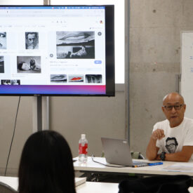 2年生 絵画専攻「写真と美術」松蔭浩之先生による2年生ファインアート科絵画専攻「写真と美術」の授業です。 写真の成り立ちから、構図や光の捉え方などを享受しつつ、「写真とはなにか?」を考察し、絵画制作に活用することを目標にします。 歴代写真家の作品を紹介し、読み解きながらの座学と、デジタルカメラの扱い方を指導しつつ、ワークショップ形式で制作を重ねていきます。 |