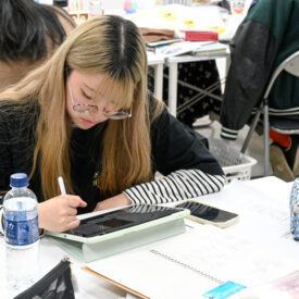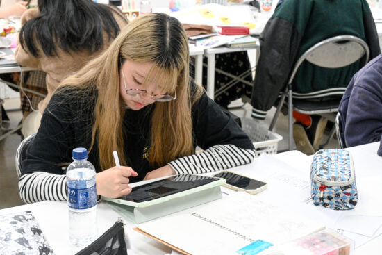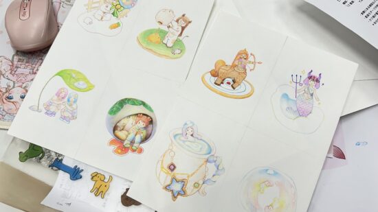 2年生 イラストレーション・絵本専攻「イラストレーション個性と表現」河井いづみ先生による2年生ビジュアルデザイン科イラストレーション・絵本専攻「イラストレーション個性と表現」の授業です。 自分自身の個性に気づき、それを表現力へとつなげながら、オリジナリティのある作品制作を行います。 課題では、雑誌やWebサイトの星占いページへの掲載を想定し、12星座をそれぞれ自分の世界観で描きます。イラストレーションだけでなく、文字や全体のデザインも含めて一つの作品として完成させます。 画材や制作方法は、アクリルなどのアナログ表現、デジタル表現を問いません。実際の仕事を意識し、クライアントを設定したうえで制作を行うことで、実践的なイラストレーション力と表現力を身につけます。 |
