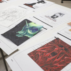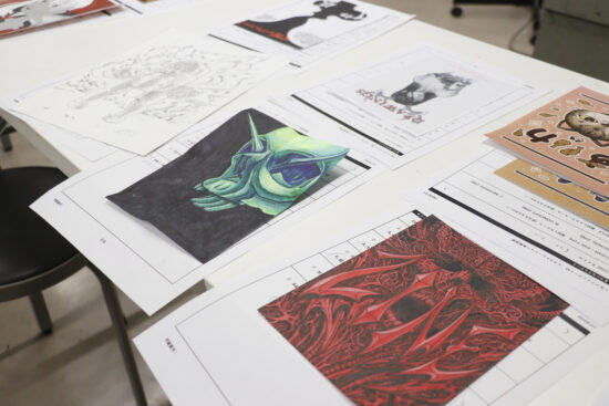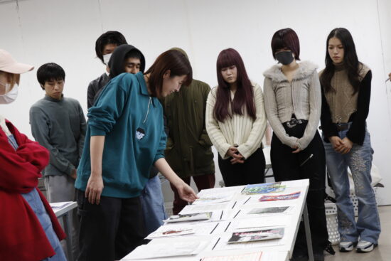 1年生 ファインアート科「イラストレーション表現演習」木下真彩先生による1年生ファインアート科「イラストレーション表現演習」の授業です。 本課題では、イラストレーション表現を軸にしながら、テーマ設定・情報整理・構成判断といったデザイン的思考を体験することを目的とします。