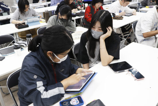 奥定泰之先生による1年生ビジュアルデザイン科「エディトリアルデザイン基礎」の授業です。 エディトリアルデザインとは、ブック(本や雑誌など)をデザインする(仕組みを考える)ことです。 平面のグラフィックとは違うブックの構造を考え、実際に デザインすることで、エディトリアルデザインの考え方の基礎を段階的に学んでいきます。