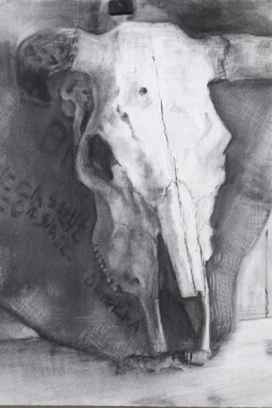 5つの力「観察力」の授業です。鉛筆や木炭を使用して、石膏像や牛骨、人物などのデッサンを学びます。デッサンの技術的なことを学ぶことはもちろんですが、モチーフをどう観察していくのか、「見る目」を育てていく授業です。