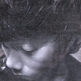 「グリザイユ」 グリザイユとは無彩色のモノクロームで描いた絵の総称ですが、この授業では、15世紀ネーデルランド(現在のベルギー、オランダ)において発祥した油彩技法を中心に捉え、それらの組成を学ぶことにより、油彩画本来の輝きや透明感、堅牢生を体験します。