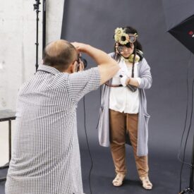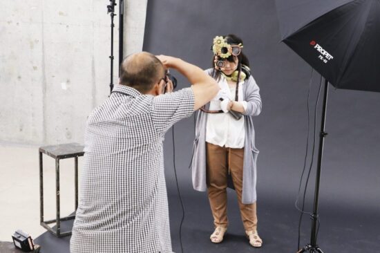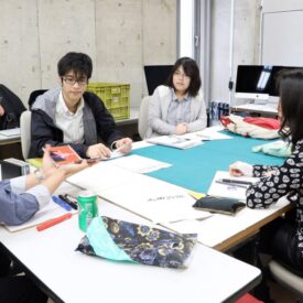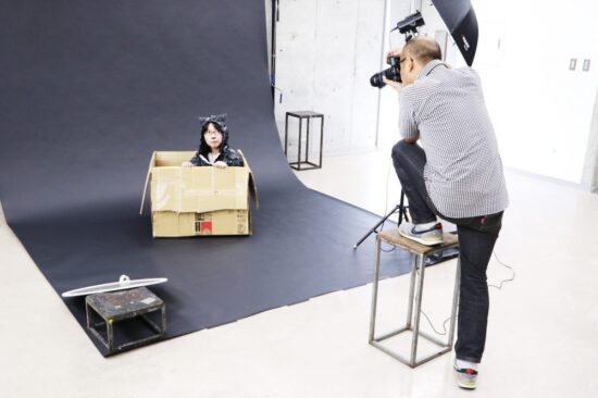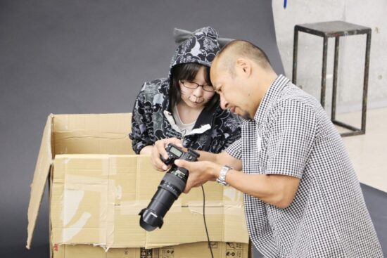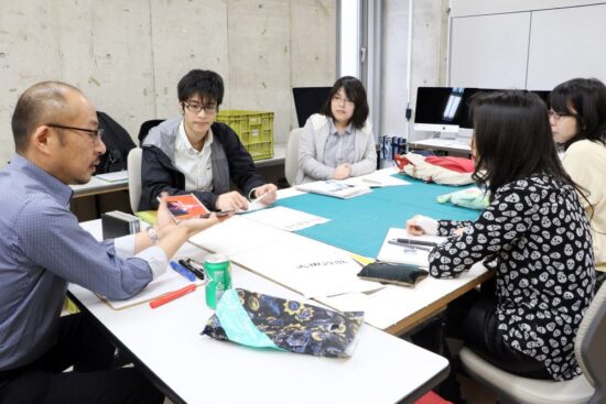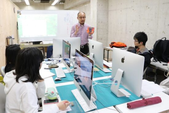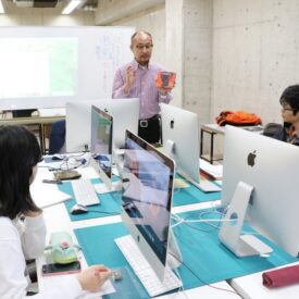 松蔭先生による2年生グラフィックデザイン専攻「トータルデザイン」の授業風景です。 1年生のPC力の授業の復習と共にスキルアップをはかります。 先生との講義とワークショップを毎回繰り返しながら、デジタルカメラで撮った写真を使い、CDジャケットのデザインをする授業です。