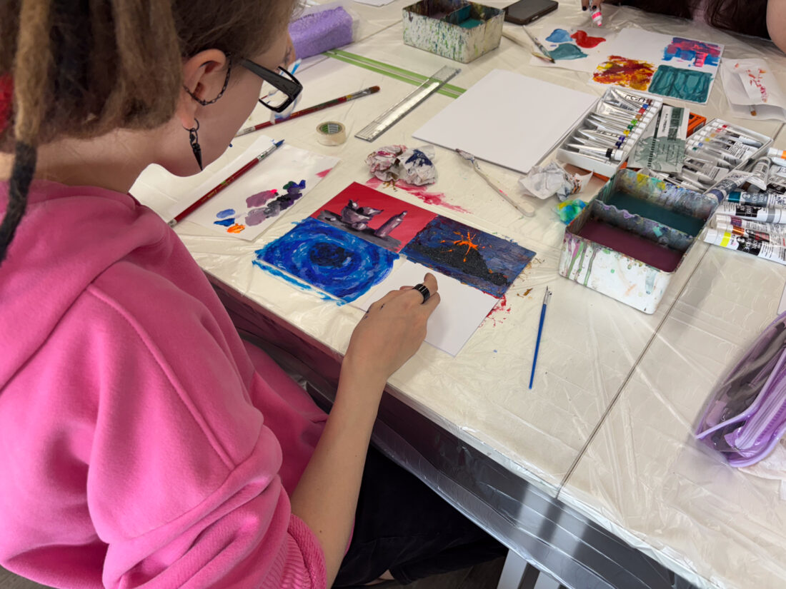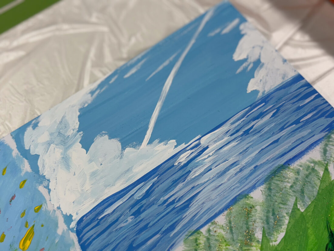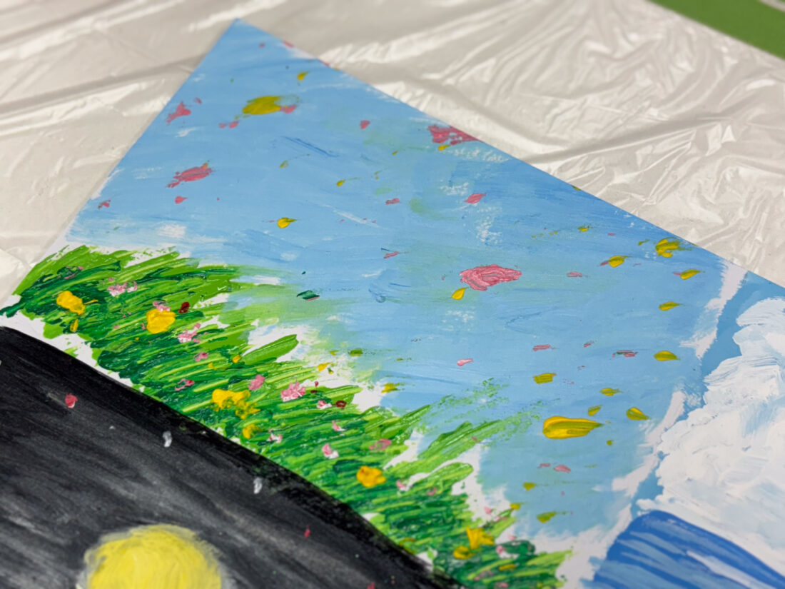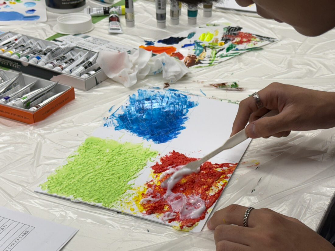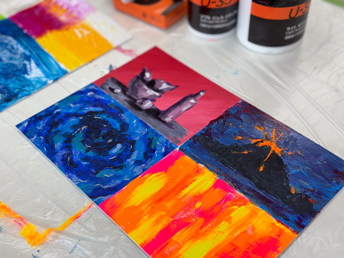 色の広がりや表現の奥深さに、みんなの目がキラキラしていました!制作を通じて、絵の具の世界を学べる貴重な機会となりました。
