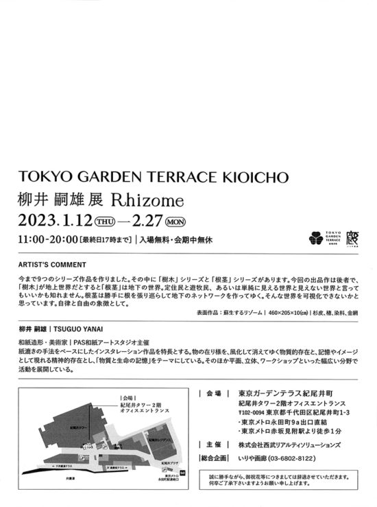 柳井 嗣雄(版画科47期1977年卒業) 期間:2023年1月12日(木)~2月27日(月) 時間:11:00~20:00(最終日17時まで) | 入場無料・会期中無休 会場:東京ガーデンテラス紀尾井町 紀尾井タワー2階オフィスエントランス
