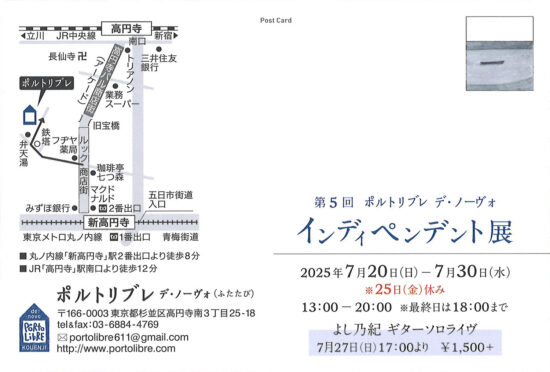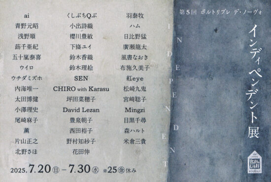 花田 伸(版画科7期1977年卒業) 期間:2025年7月20日(日)~30日(水) ※25日(金)休み 時間:13:00~20:00 ※最終日は18:00まで 会場:ポルトリブレ URL:http://portolibre.com