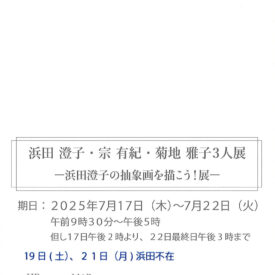 浜田 澄子(造形科10期1981年卒業) 期間:2025年7月17日(木)~22日(火) 時間:9:30~17:00 ※但し17日14:00より、22日最終日15:00まで 会場:横浜山手西洋館(山手234番館)