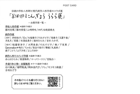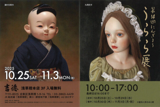 長谷川 裕子(造形科14期1985年卒業) 期間:2025年10月25日(土)~11月3日(月・祝) [前半]10月25日(土)〜10月29日(水) [後半]10月30日(木)〜11月3日(月・祝)※創作人形のみ入替 時間:10:00~17:00 (最終日は16:00まで) 会場:吉徳 浅草橋本店 3F