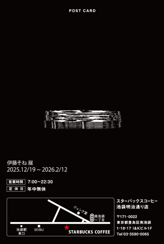 伊藤 そね(ファインアート科絵画専攻2年生) 期間:2025年12月19日(金)~2026年2月12日(木) 営業時間:7:00~22:30 定休日:年中無休 会場:スターバックスコーヒー池袋明治通り店