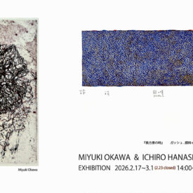 大川 みゆき(版画科14期1985年卒業) 花島 一郎(造形科14期1985年卒業) 期間:2026年2月17日(火)~3月1日(日) 23日(月,祝)休廊 時間:14:00~18:00 (最終日〜17:00) 会場:B-gallery
